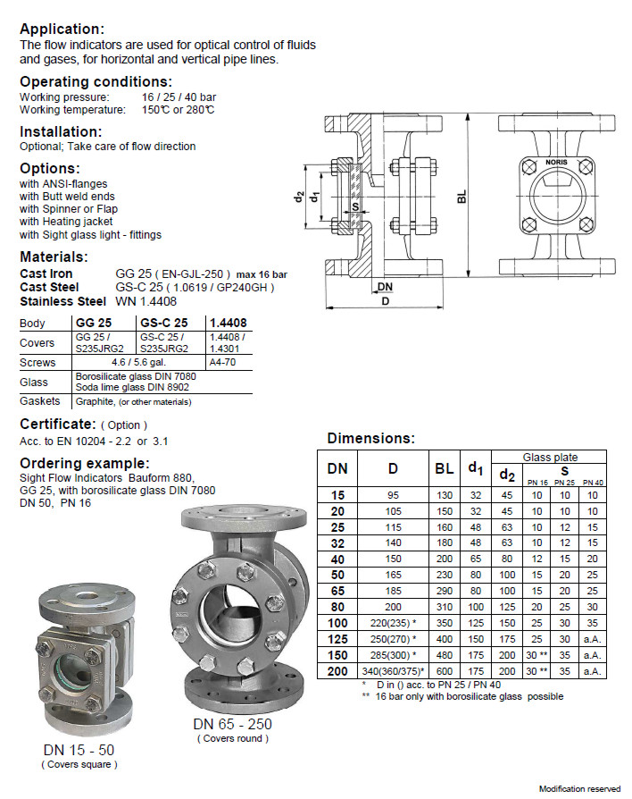 NORIS | sight flow indicator acc. to DIN 3237