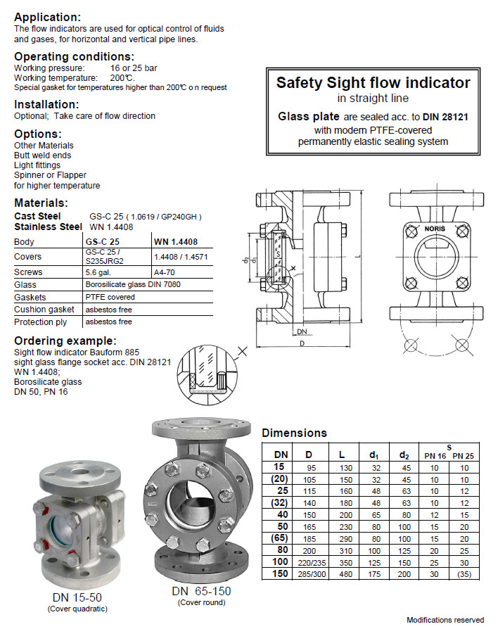 Products > Fittings > sight flow indicators > with DIN flanges > Bauform 885