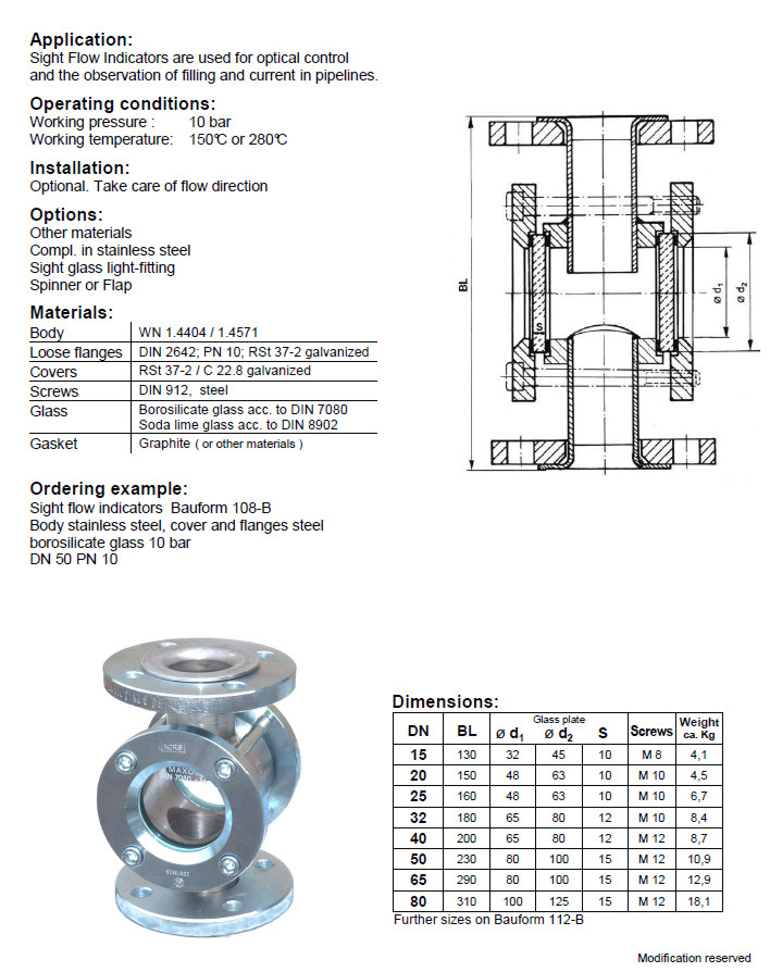Products > Fittings > sight flow indicators > with DIN flanges > Bauform 108-B