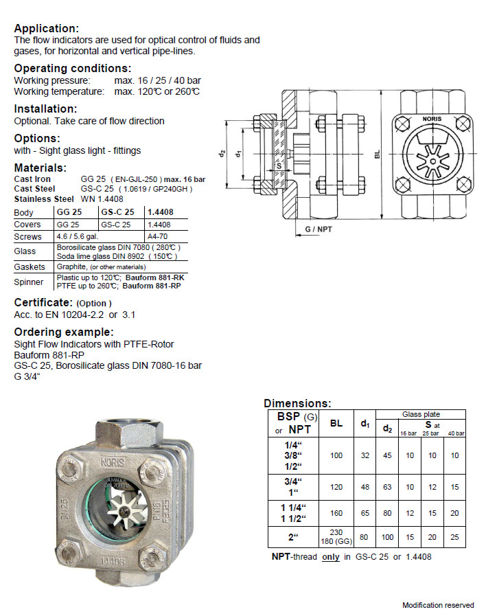 NORIS | sight flow indicator with threaded connection and spinner