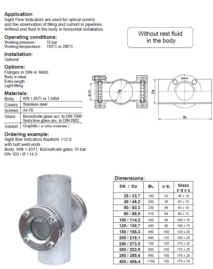 Products > Fittings > sight flow indicators > with butt- or socked-weld ends > Bauform 112-S