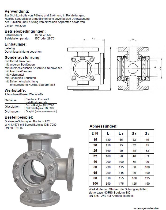 Produkte > Armaturen > Durchfluss Schaugläser > in Eck- oder 3-Wege-Ausführung > Bauform 972