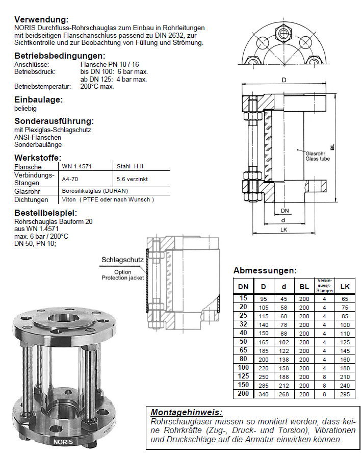 Produkte > Armaturen > Durchfluss Schaugläser > Rohrschaugläser > Bauform 20