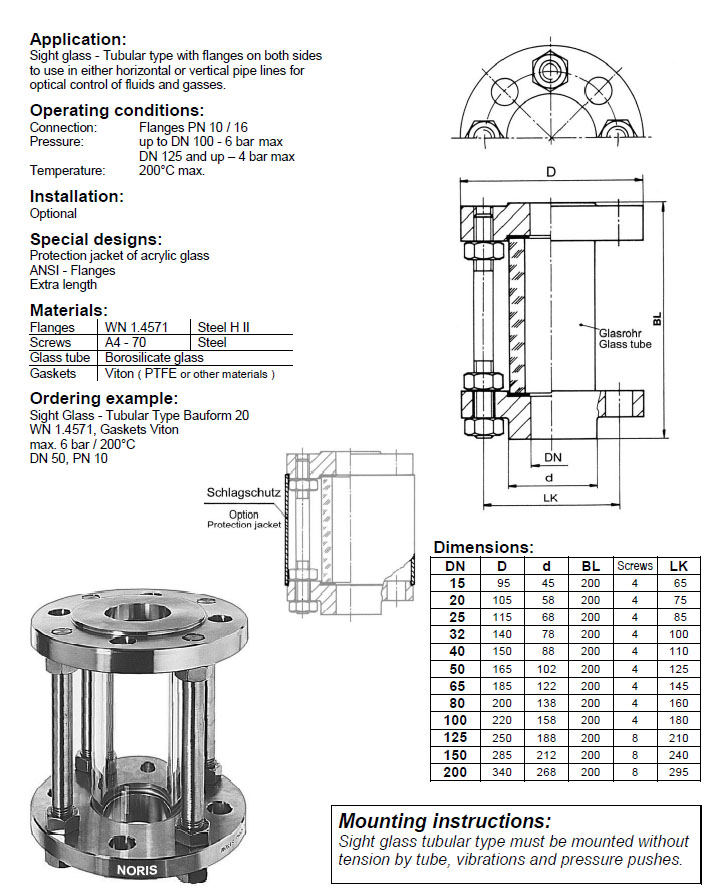 Products > Fittings > sight flow indicators > tubular-sight glass > Bauform 20