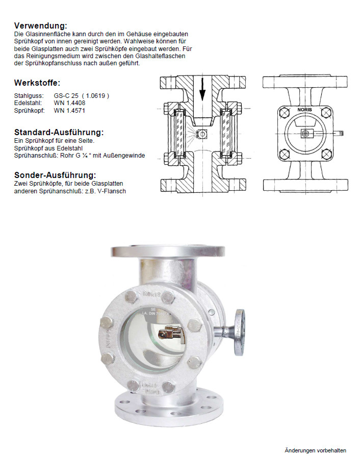NORIS | Durchflussschauglas mit Sprühvorrichtung
