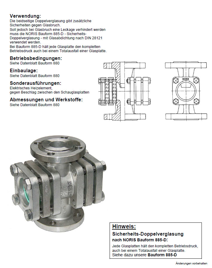 Produkte > Armaturen > Durchfluss Schaugläser > Zusatz-Ausstattungen > Bauform 880-D