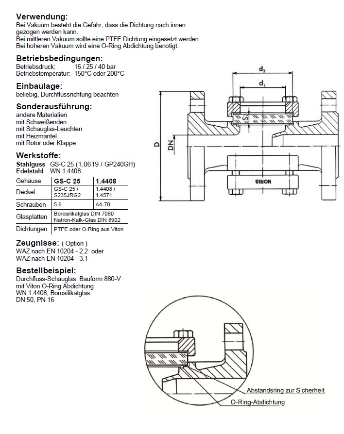 Produkte > Armaturen > Durchfluss Schaugläser > Zusatz-Ausstattungen > Bauform 880-V