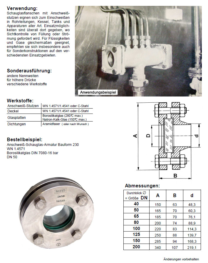 Produkte > Armaturen > Behälter Schaugläser > zum Ein- oder Aufschweißen > Bauform 230