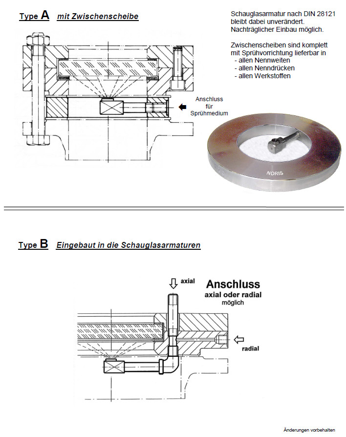 NORIS | Behälterschauglas mit Sprühvorrichtung