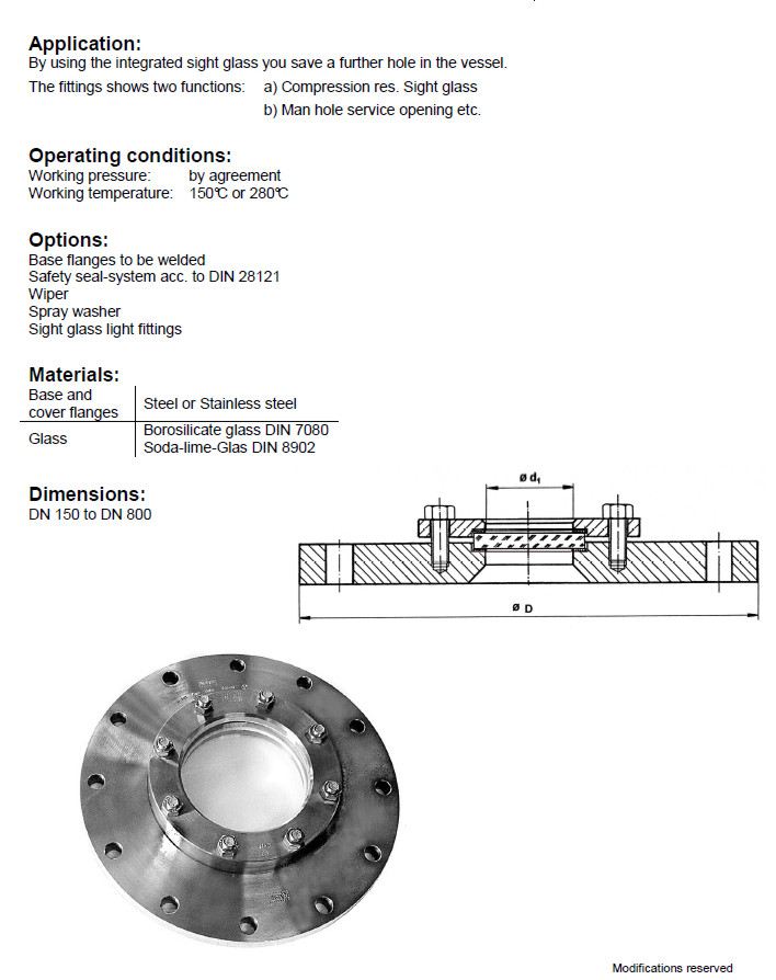 Products > Fittings > tank sight glass-fittings > to be mounted to an existing flange > Bauform 1205