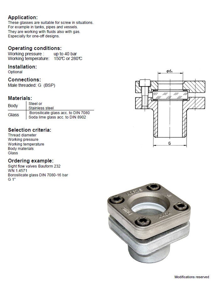 Products > Fittings > tank sight glass-fittings > to be mounted to an existing flange > Bauform 232