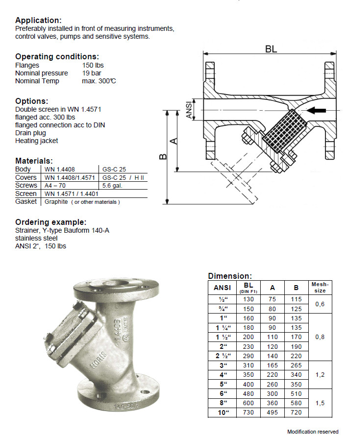 Products > Fittings > strainers > Bauform 140-A 150 LBS