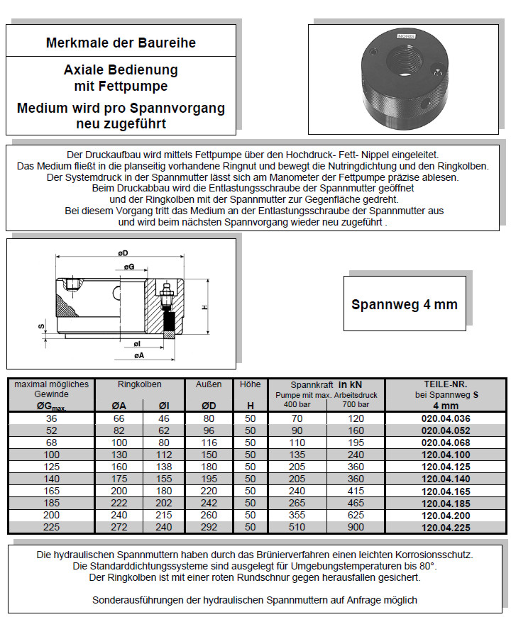 Produkte > Spannelemente > Hydraulische Spannmuttern > Kupplungssystem Fett > Baureihe N20.04