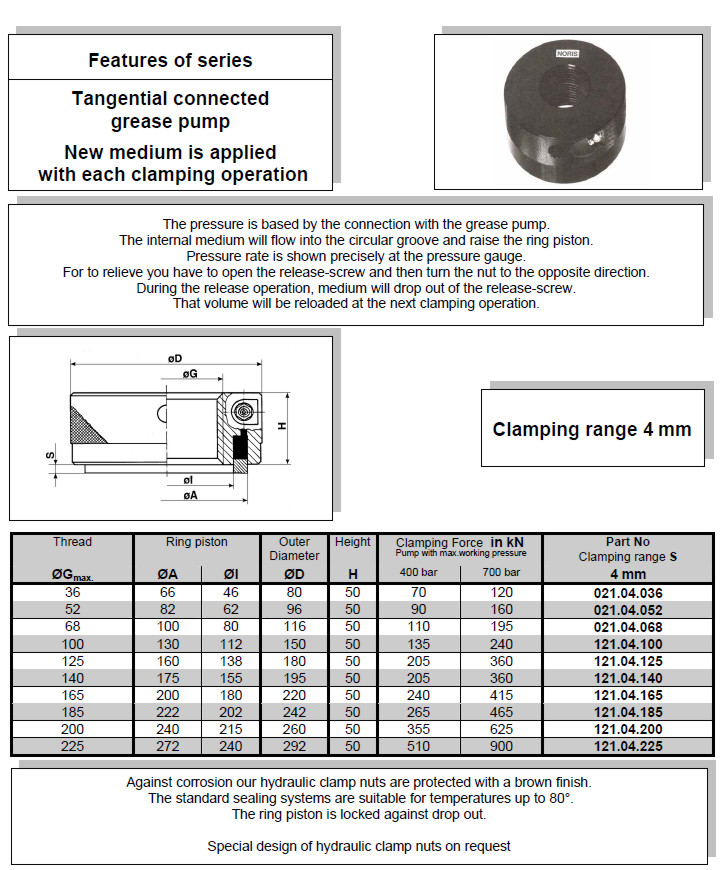 NORIS | Hydraulic clamp nut with high pressure grease nipple
