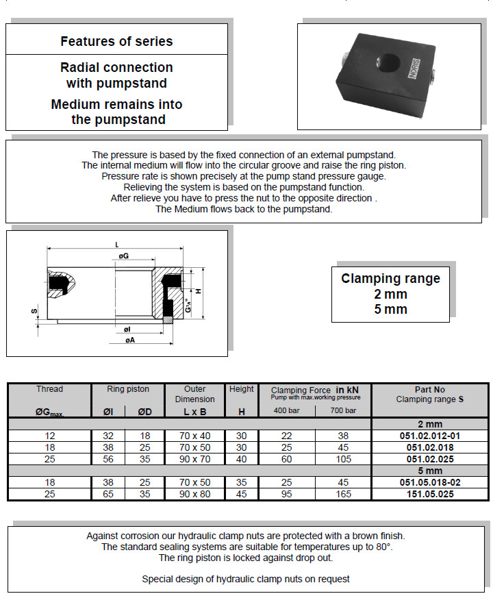 NORIS | Hydraulic clamp nut with fixed connection, rectangle