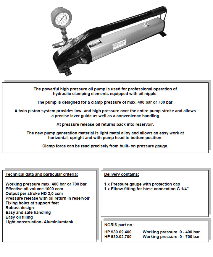 Products > Hydraulic Elements > Accessories > Pumps > HP 930.02.400 / 700